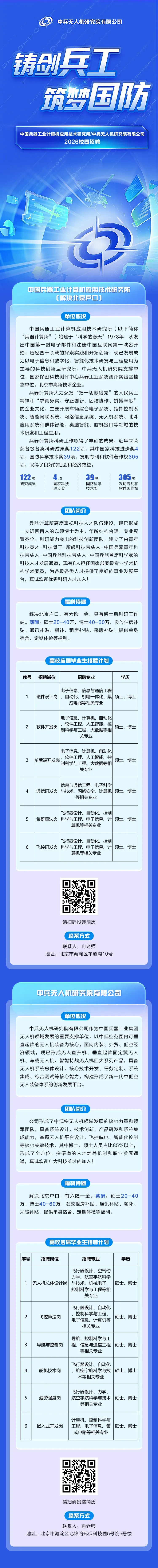 大型央企国企校园招聘,中兵无人机研究院有限公司2026校园招聘开启