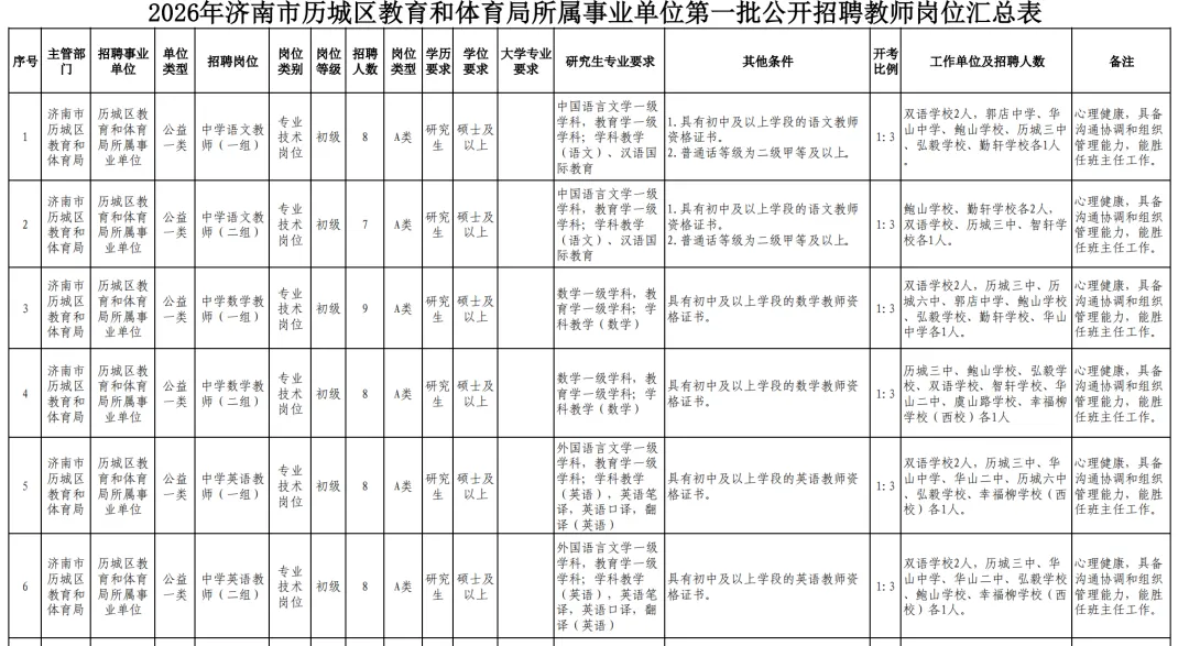 >26年山东济南教师编招聘发布,本科应届生无岗位可报