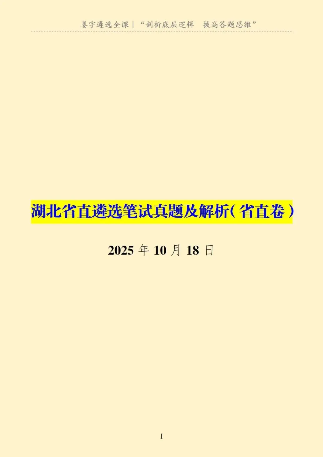 2025年10月18日|湖北省直遴选笔试真题及解析(省直卷)