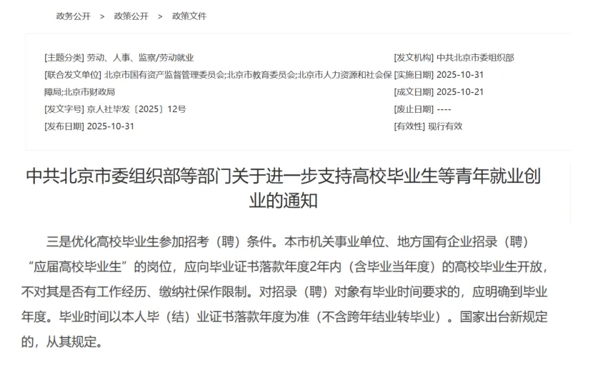 北京、湖北、山东、新疆、四川……等全国十多个省份都陆续发文调整机关事业单位及地方国有企业对应届生身份的限制。