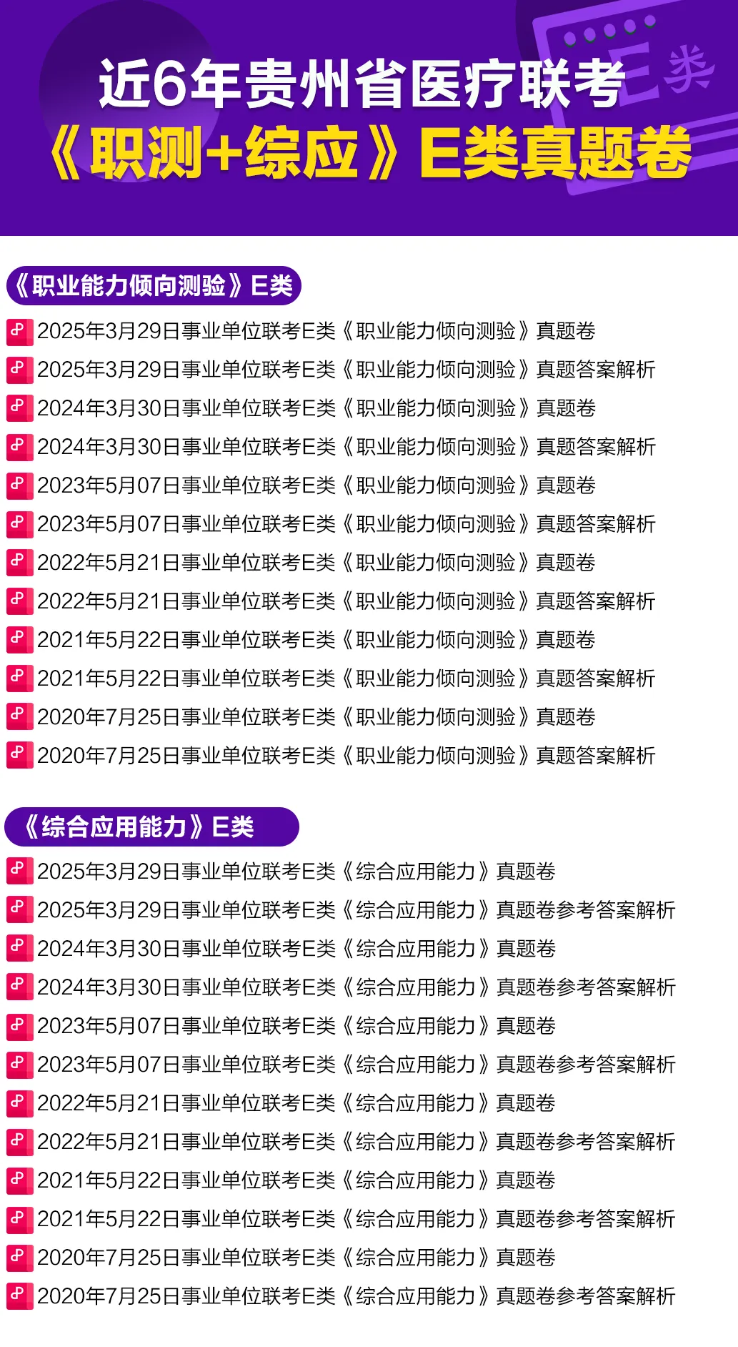 👇点击下方卡片关注公众号后台回复关键词【联考真题】✍下载近8年贵州事业单位职测+综应A类真题✅适用于:事业单位人文社科类专业技术岗位。比如经济、新闻、出版编辑、公证员、馆员、会计、广电播音、工艺美术等岗位。✅招聘专业:主要有会计学、体育学、教育学、历史学、外国语言文学、新闻出版、数字媒体艺术等相关专业、哲学、中国语言文学、美术及摄影、设计学、舞蹈学、戏剧与影视、艺术理论、音乐学、法学、民族学、社会学、政治学类、马克思主义理论类等。《职业能力倾向测验(B类)》分为:常识判断+言语运用+数量分析+判断推理+综合分析,各科目分值共150分。