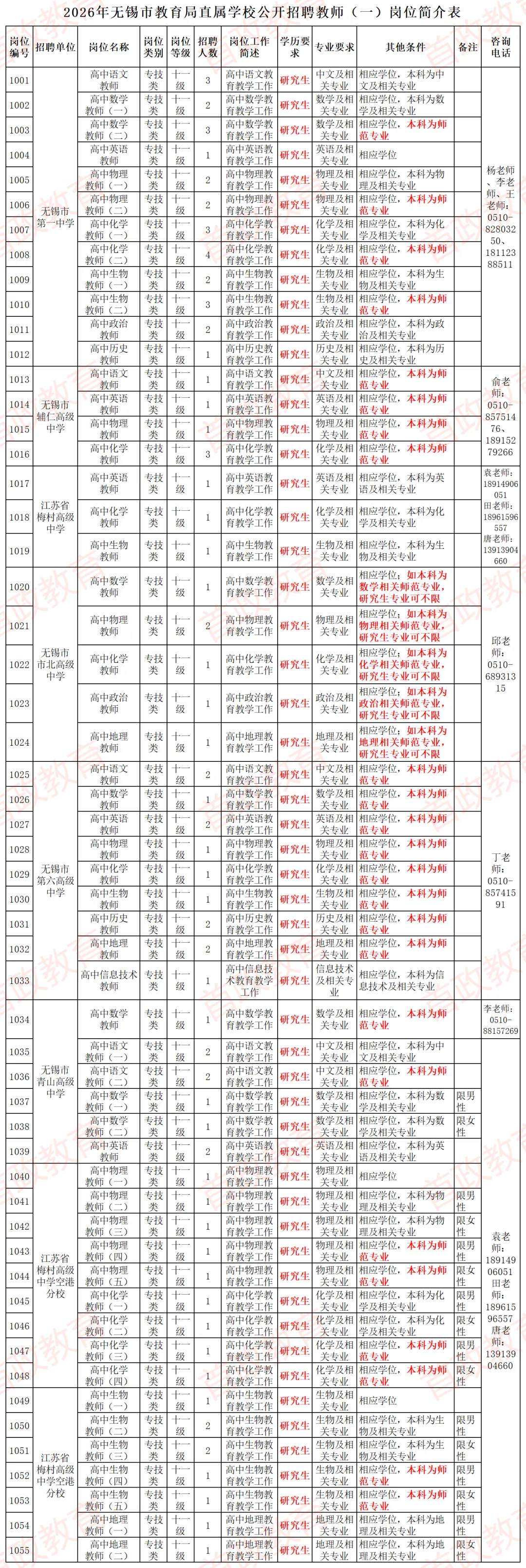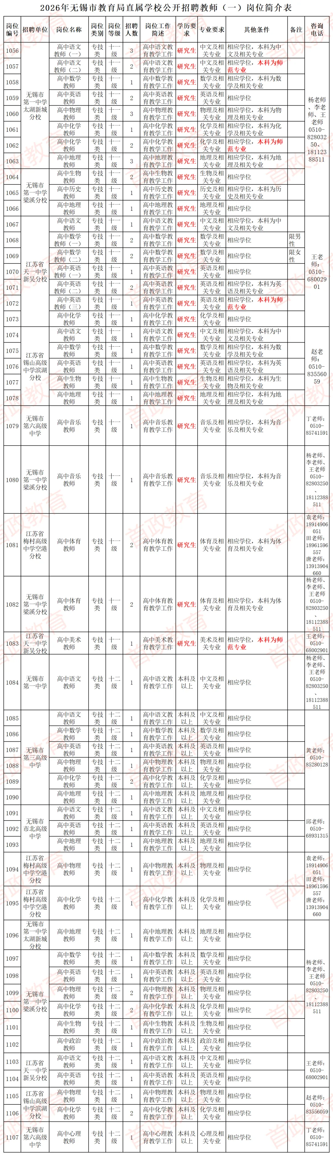 (3)具备报考岗位所要求的资格条件和工作能力,详见《2026年无锡市教育局直属学校公开招聘教师(一)岗位简介表》(附件1),附件中有其他条件的,以附件中的条件为先。《岗位简介表》中“专业要求”由无锡市教育局根据报名人员所学专业课程、研究方向等认定是否符合招聘岗位的专业要求。