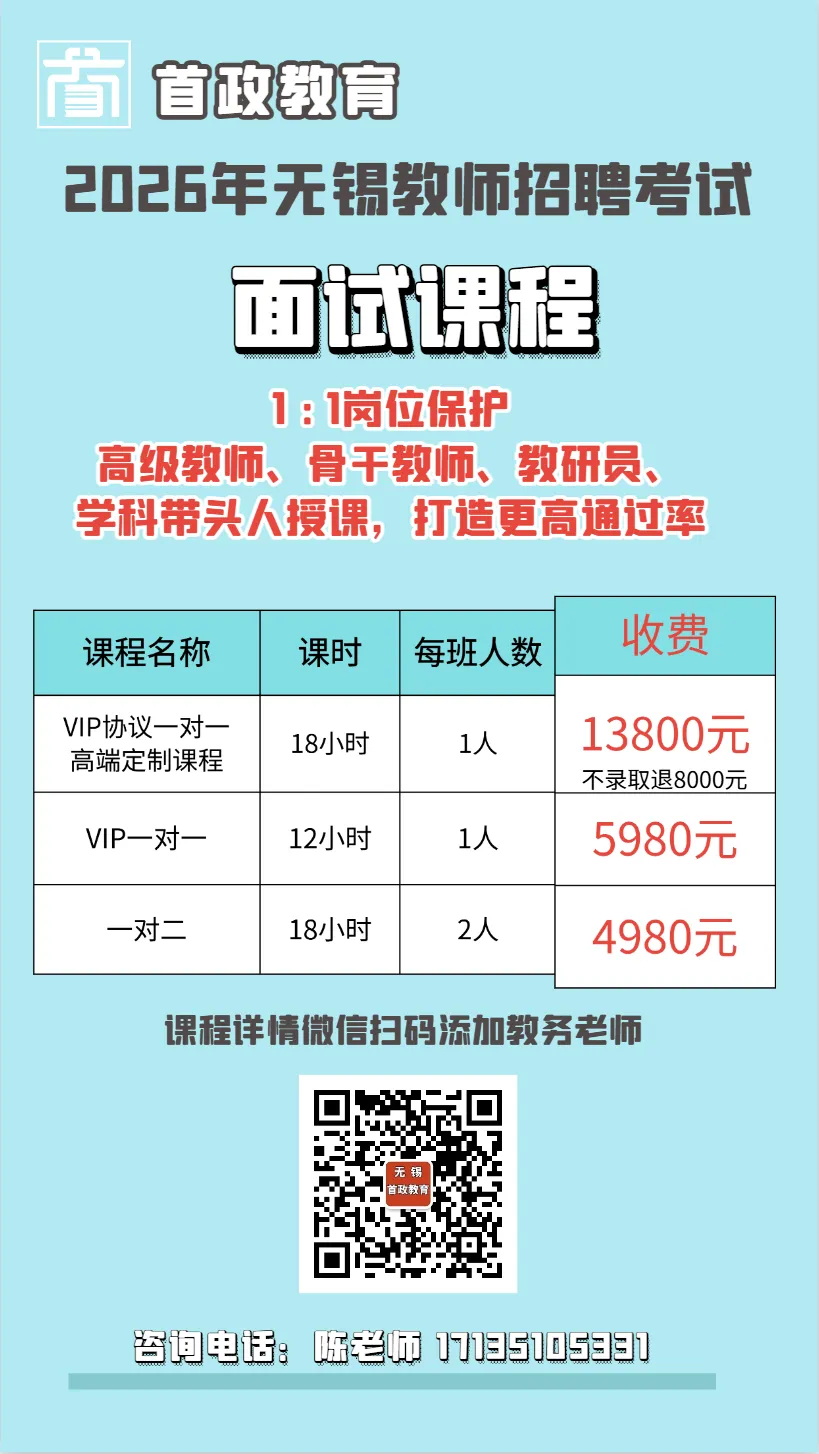 (3)面试。以考察拟任岗位所需的专业技术能力和综合素质为主。面试时间、地点等事项在无锡市教育局官网另行公告。