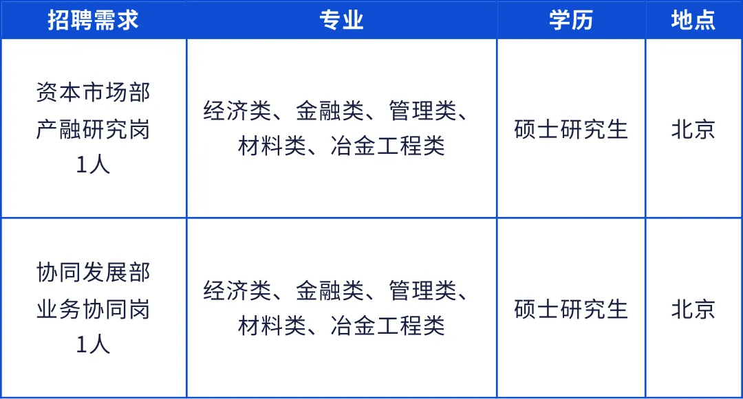 2.硕士及以上学历,经济类、金融类、管理类、材料类、冶金工程类专业;