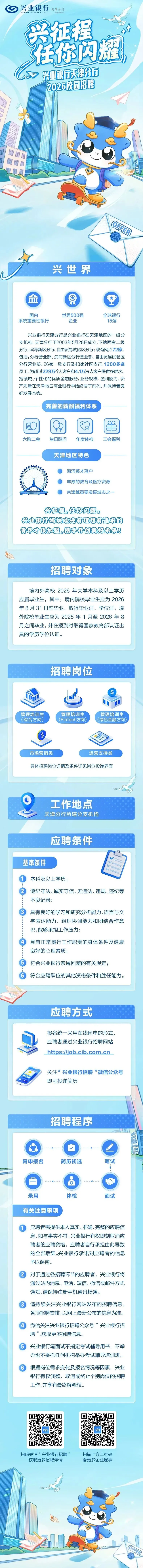 >国企 | 兴业银行天津分行2026年校园招聘•面向26届应届生