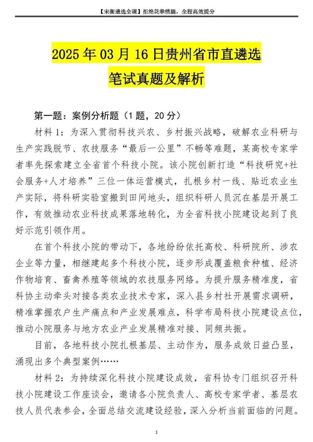 >2025年03月16日贵州省市直遴选笔试真题及解析