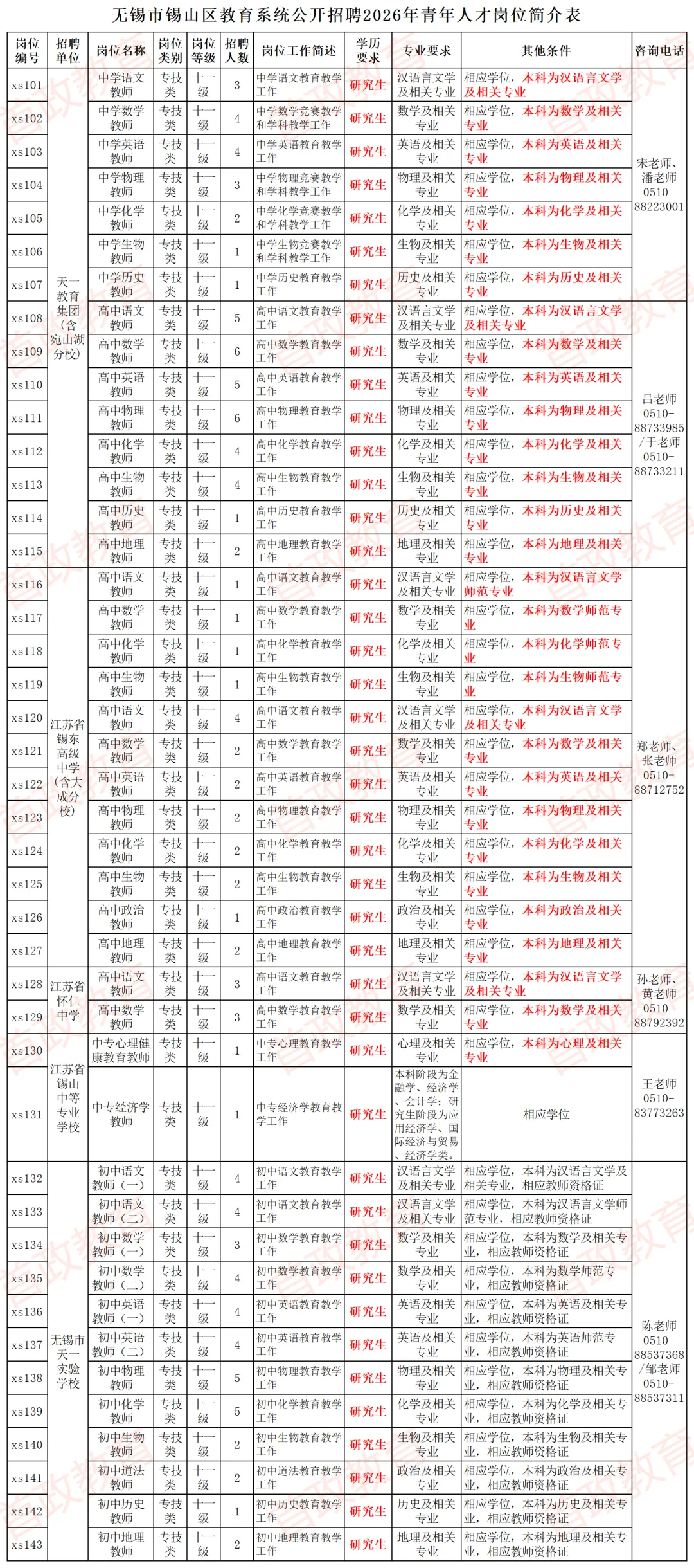 5.具备报考岗位所要求的资格条件,详见附件《无锡市锡山区教育系统公开招聘2026年青年人才岗位简介表》(以下简称《岗位简介表》),附件中有其他条件的,以附件中的条件为先。《岗位简介表》中“专业要求”由无锡市锡山区教育局根据报名人员所学专业课程、研究方向等认定是否符合招聘岗位的专业要求。