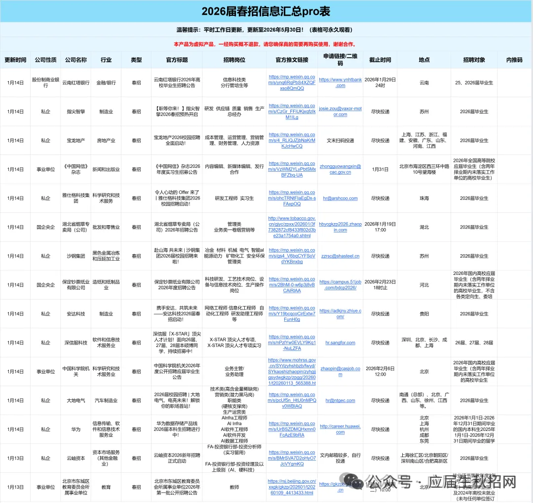 「2026届春招信息PRO表」