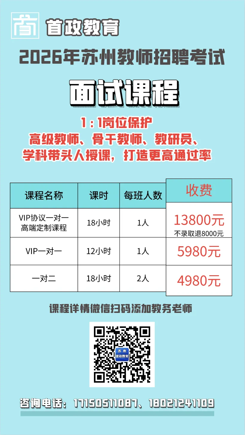 首政教育提醒您:江苏各市历年真题,扫码后在首政教育微店商城购买,所有资料均为纸质(含答案和解析)笔试初定2026年2月8日在江苏昆山进行,具体时间和地点详见《笔试准考证》(考生可于2月5日9:00起在报名系统自行打印,如有变化将提前在报名系统进行公告)。笔试成绩满分为100分,设50分为合格分数线。根据各岗位招聘人数,从笔试成绩合格者中按照从高分到低分的顺序,以1:5的比例确定进入面试人员,不足1:5比例的,按实际合格人数确定进入面试人员。考生可于笔试次日登录报名系统查阅笔试成绩及是否取得面试资格等相关信息。