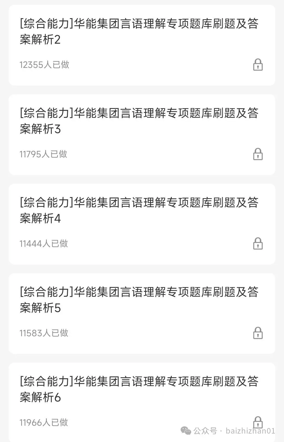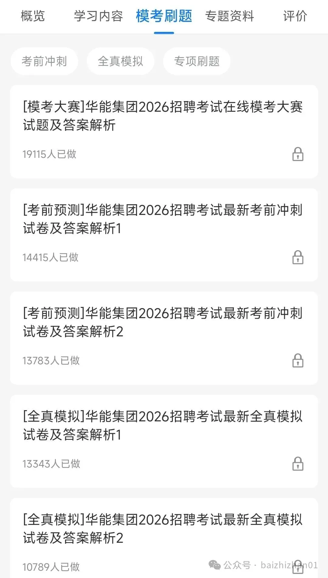 -历年真题套题:【百职斩】公众号发消息内回复“华能集团”获取-华能集团笔试历年真题+视频课+复习资料+机考模拟+APP刷题库+企业文化知识+时政华能集团笔试历年真题+视频课+复习资料+机考模拟+APP刷题库+企业文化知识+时政