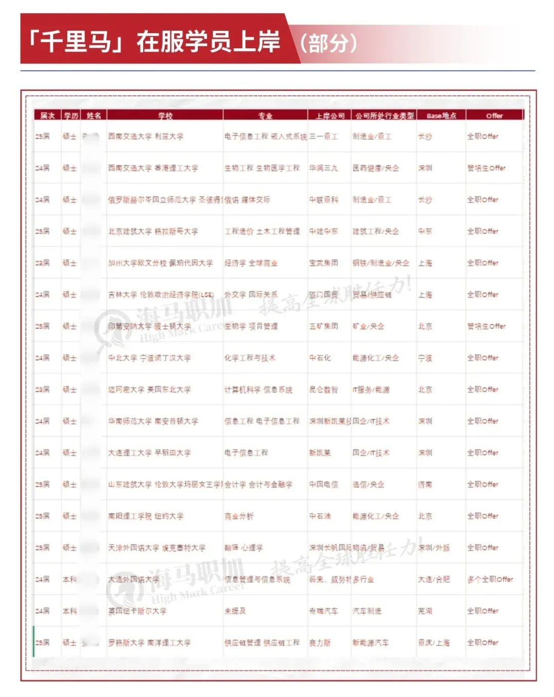 目前「海马职加」千里马计划学员已陆续斩获心仪名企offer: