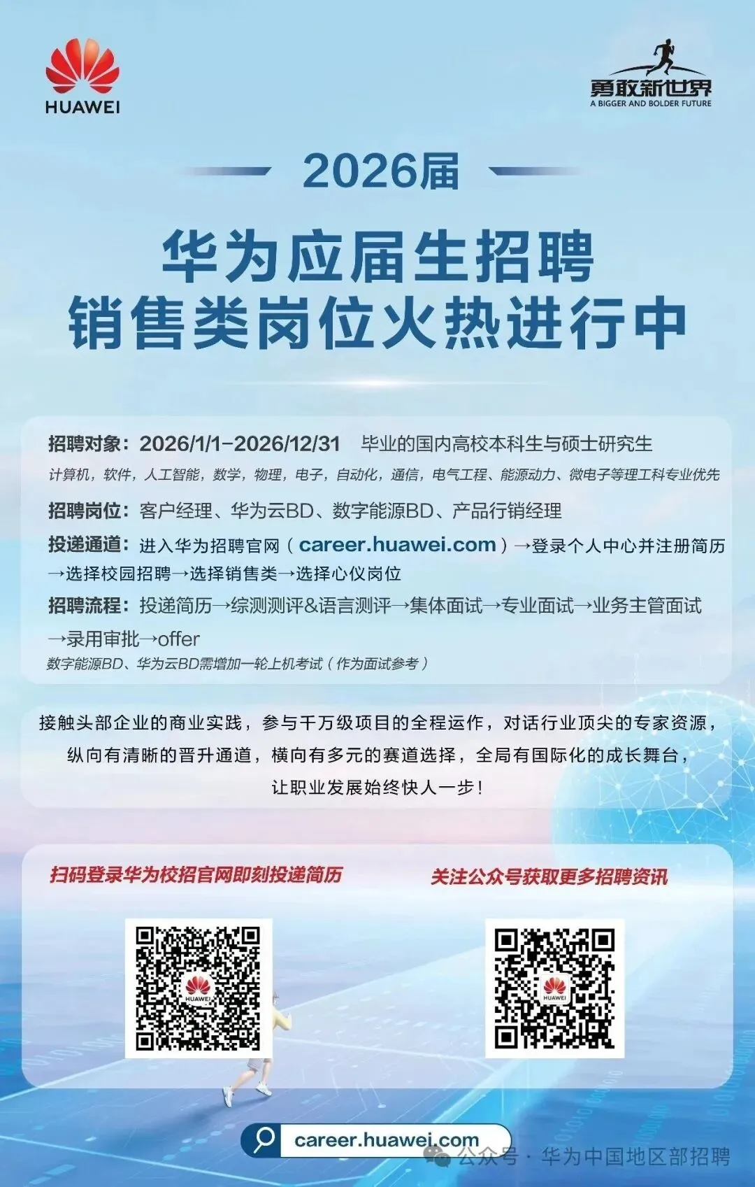 >26春招 | 华为2026届销售类应届生招聘火热进行中