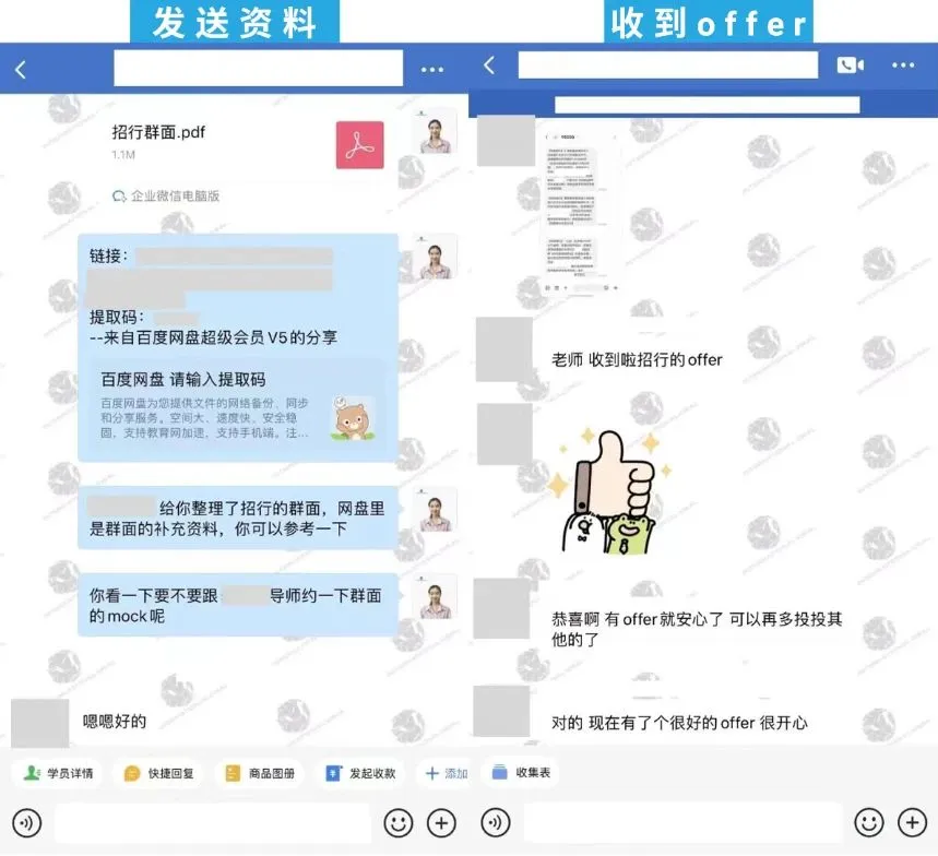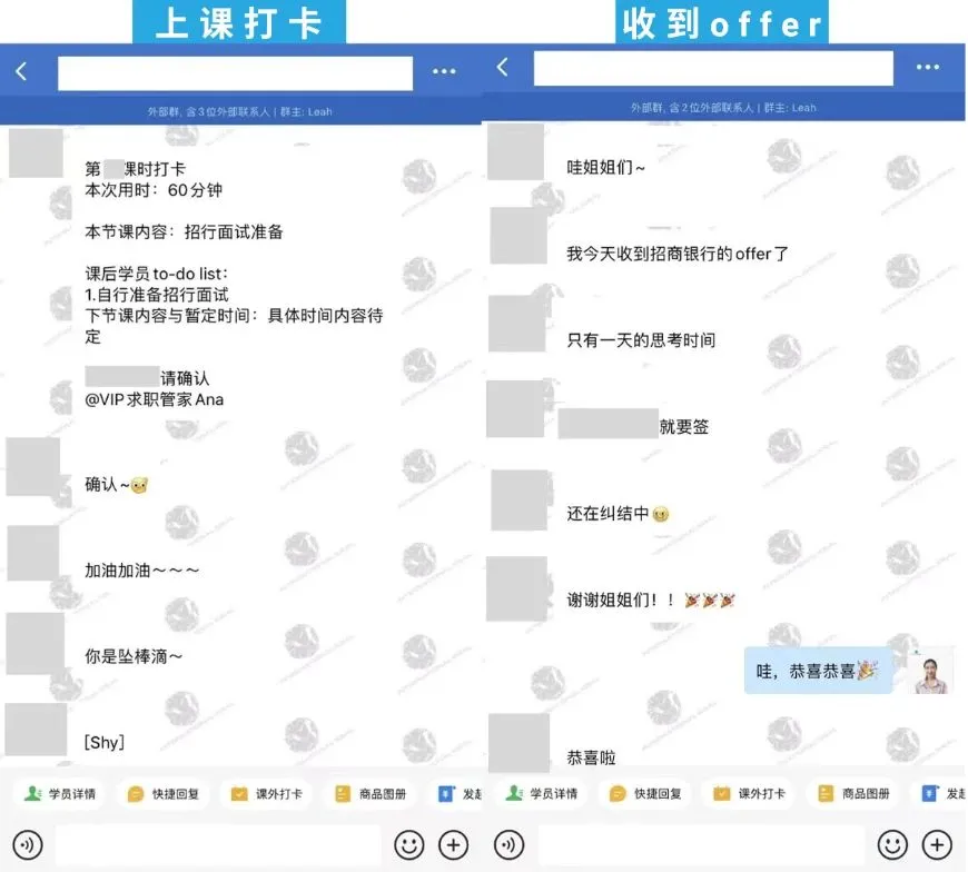 经过整个团队的帮助,学员收获了招商银行、平安银行等多家目标企业的面试。