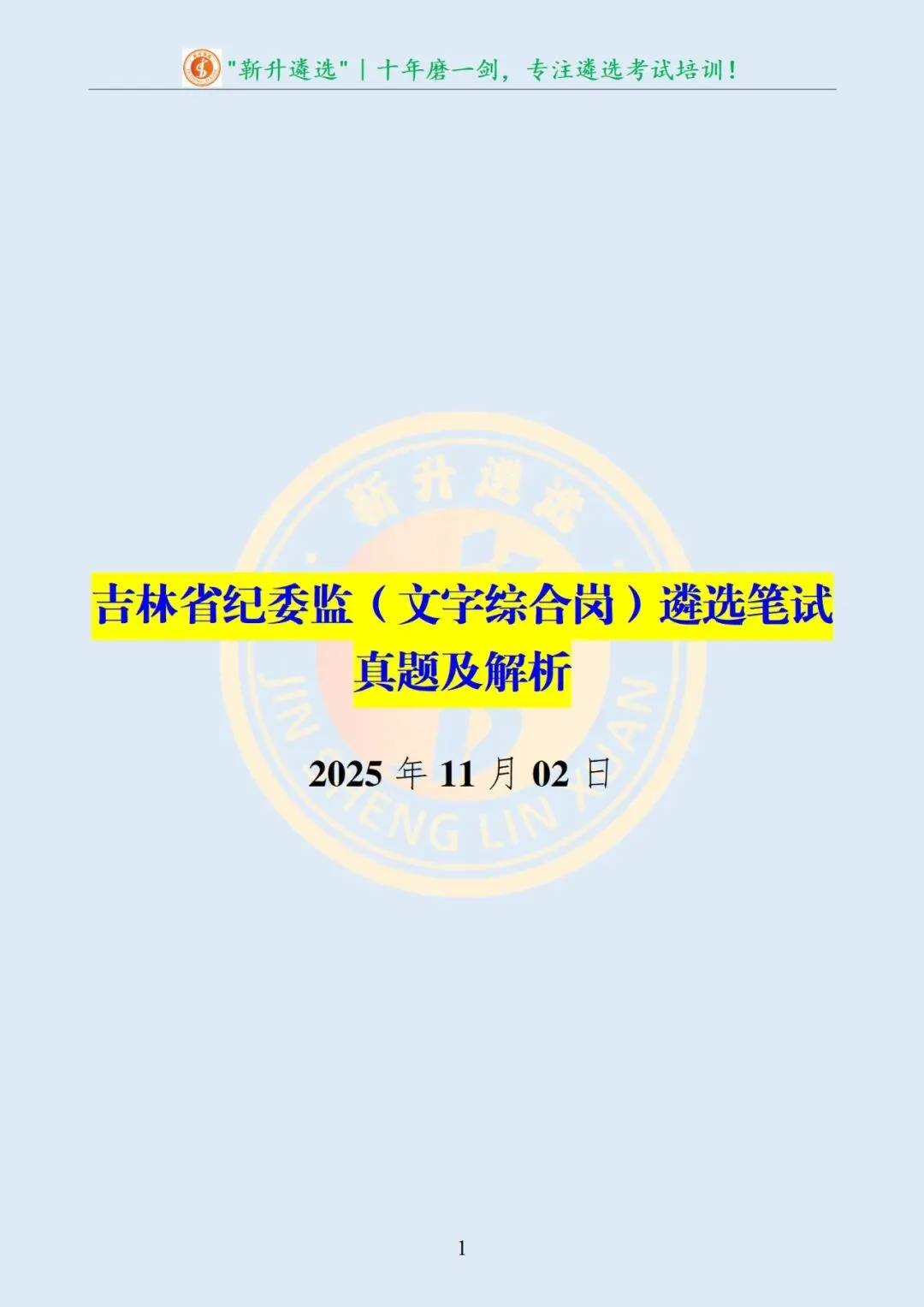 真题分享|2025年11月02日|吉林省纪委监(文字综合岗)遴选笔试真题及解析