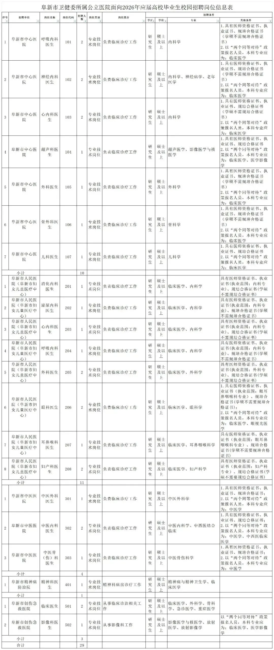 (https://wsjk.fuxin.gov.cn)、市人社局(https://rsj.fuxin.gov.cn)网站上发布招聘公告及岗位信息。