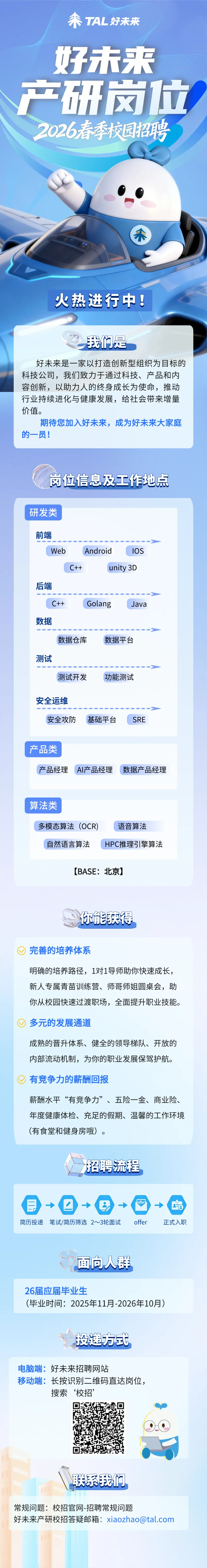 当前位置:首页>应届生招聘>校招|好未来2026产研春季校园招聘启动
