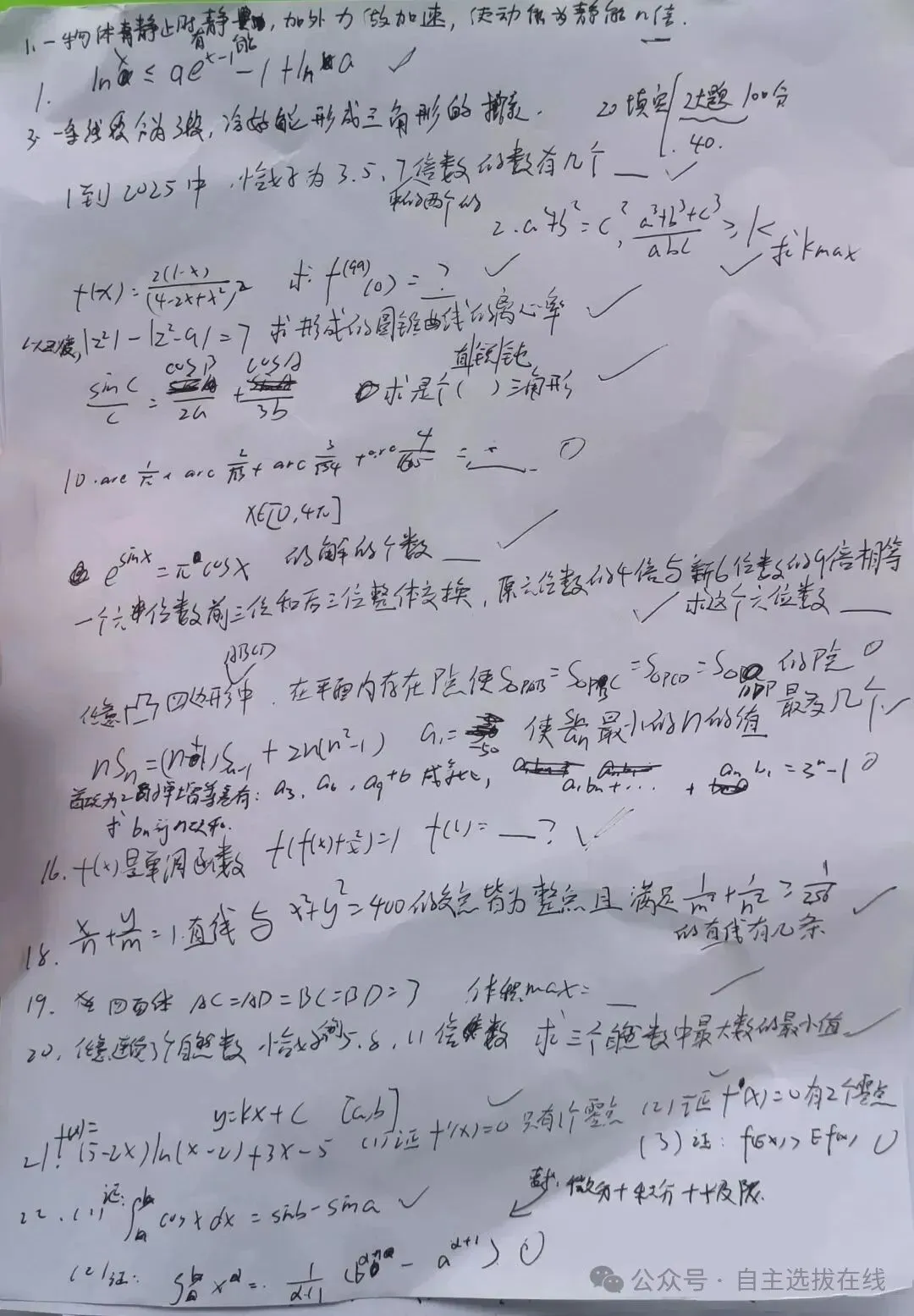题型&题量:数学20个填空, 2道大题, 大题各20分, 共40分;物理20道单选,10道填空, 2道大题;哲学一共5道大题。