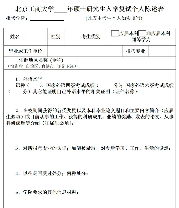 图为北京工商大学MPAcc复试个人陈述表