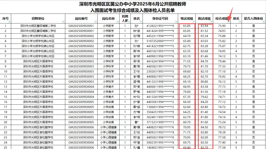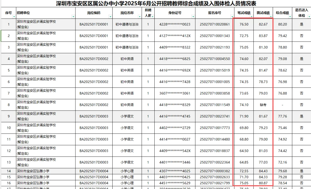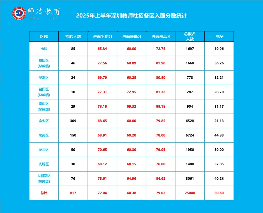 2025上半年深圳教师社招各区入面分数统计来啦!估分好的老师可以参考下上半年的入面分数早点准备面试哦!