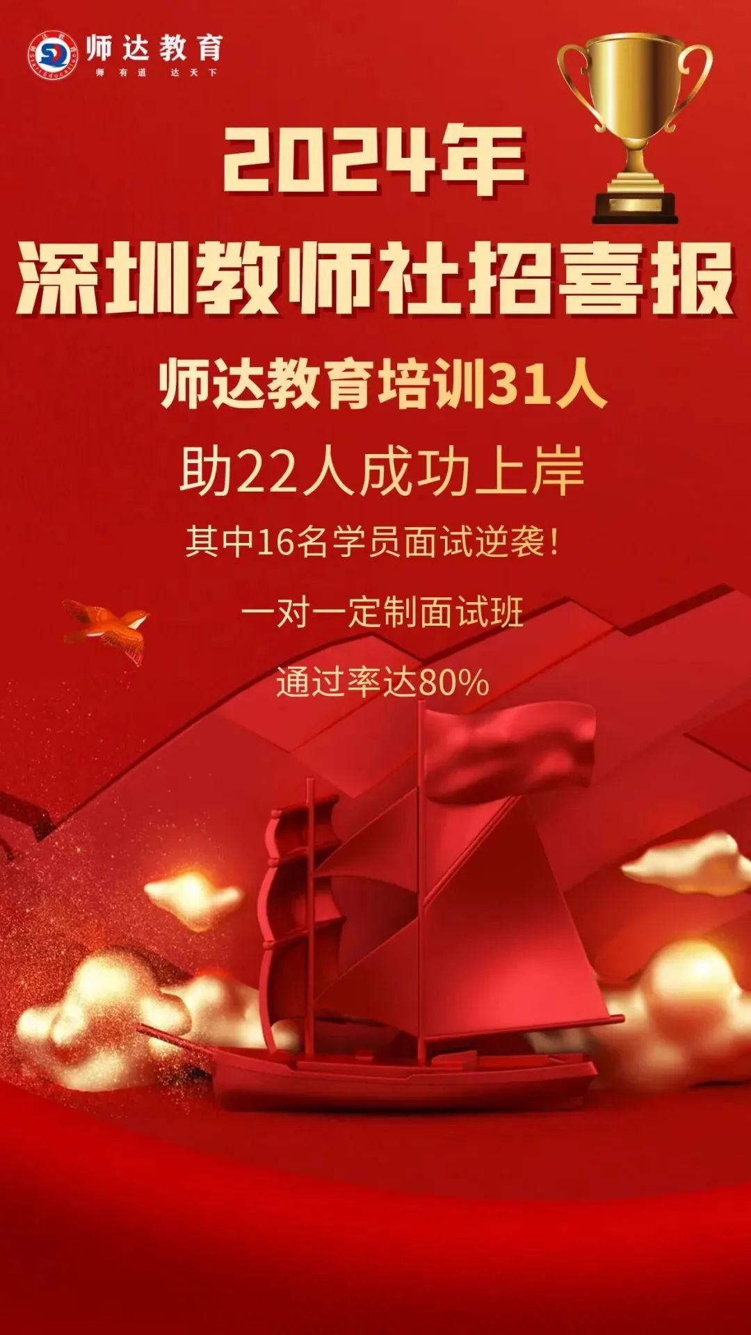 喜报:珠海高新区上岸6人,4人面试逆袭(每7名上岸就有1名师达学员)