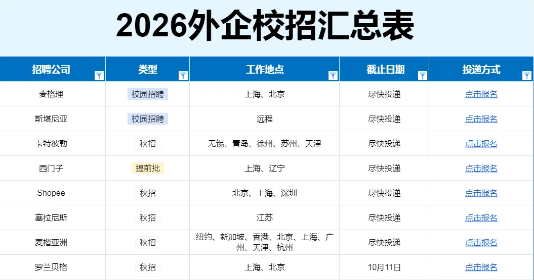 1.实时更新的外企招聘汇总表(校园招聘+社会招聘)