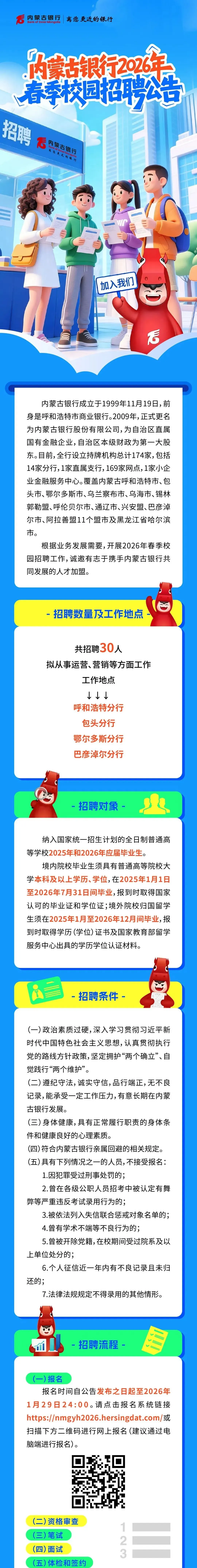 【银行】内蒙古银行2026年春季校园招聘,应届生可报!
