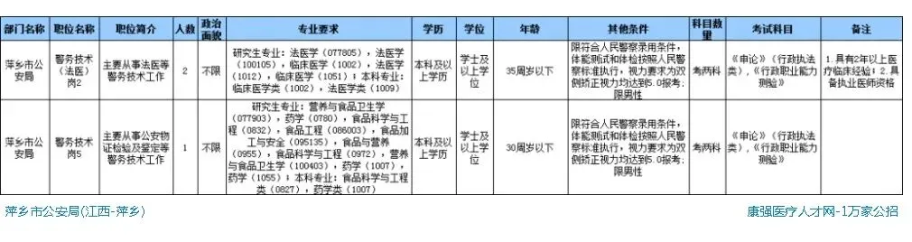 (1)设区市及以下公安机关、省公安厅高速交警各直属支队和监狱、戒毒所人民警察职位,年龄一般为30周岁以下(1995年1月以后出生);特警职位,年龄为25周岁以下(2000年1月以后出生)。