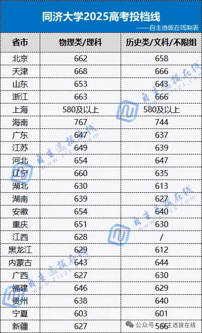 同济大学强基计划招生专业分为两个专业组,专业组 1 包含数学与应用数学、应用物理学、工程力学、海洋科学与技术(原海洋科学,2025 年更名),专业组 2 包含应用化学、生物技术,所有专业均要求考生选考物理 + 化学。采用 “复交南” 入围模式,报名成功即可参加校测初试,按初试成绩确定复试入围名单,最终综合成绩 = 高考成绩 / 高考满分 ×850 + 学校考核成绩(满分 150 分,其中初试 50 分,复试面试 100 分)。二、历年录取分数情况(综合成绩最低分)