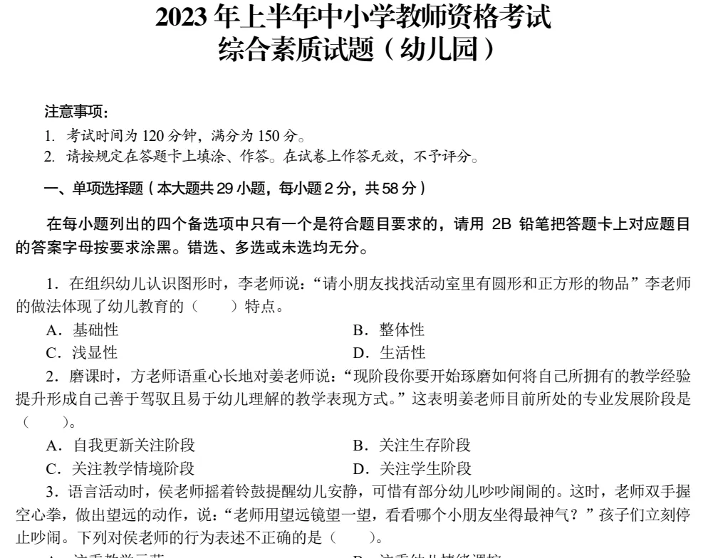 >教师资格证笔试历年真题汇总PDF(无水印版)