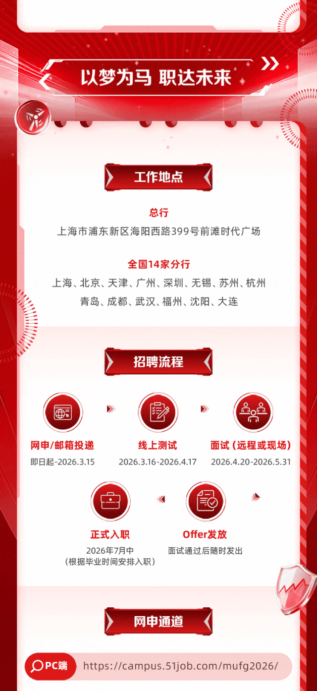 >三菱日联银行(中国)2026 校园招聘正式启动