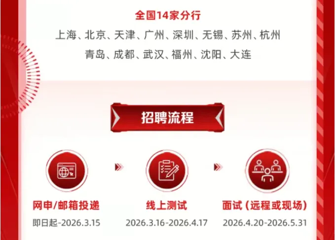 三菱日联银行中国2026年校园招聘启动!