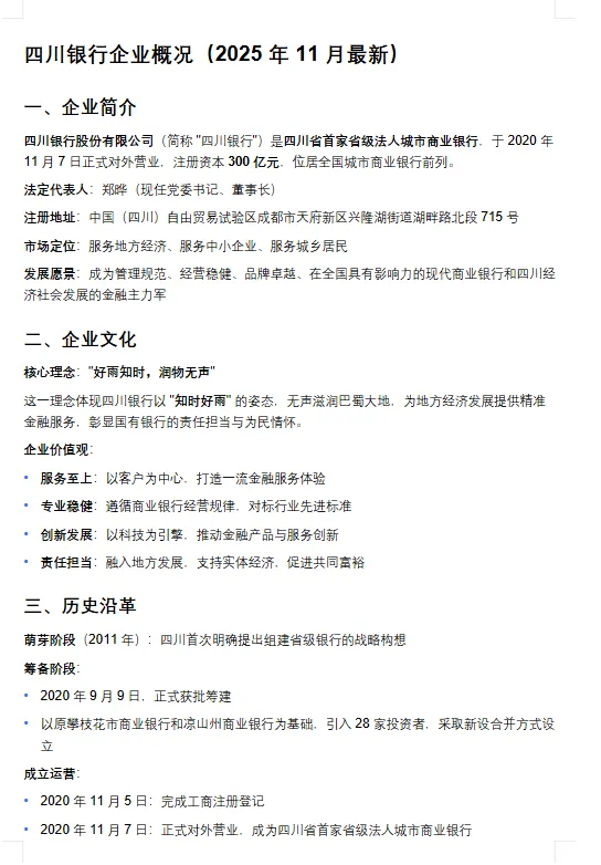 银行特色(必背):四川银行成立背景、核心业务(普惠金融、成渝双城经济圈金融服务)、企业文化 / 价值观