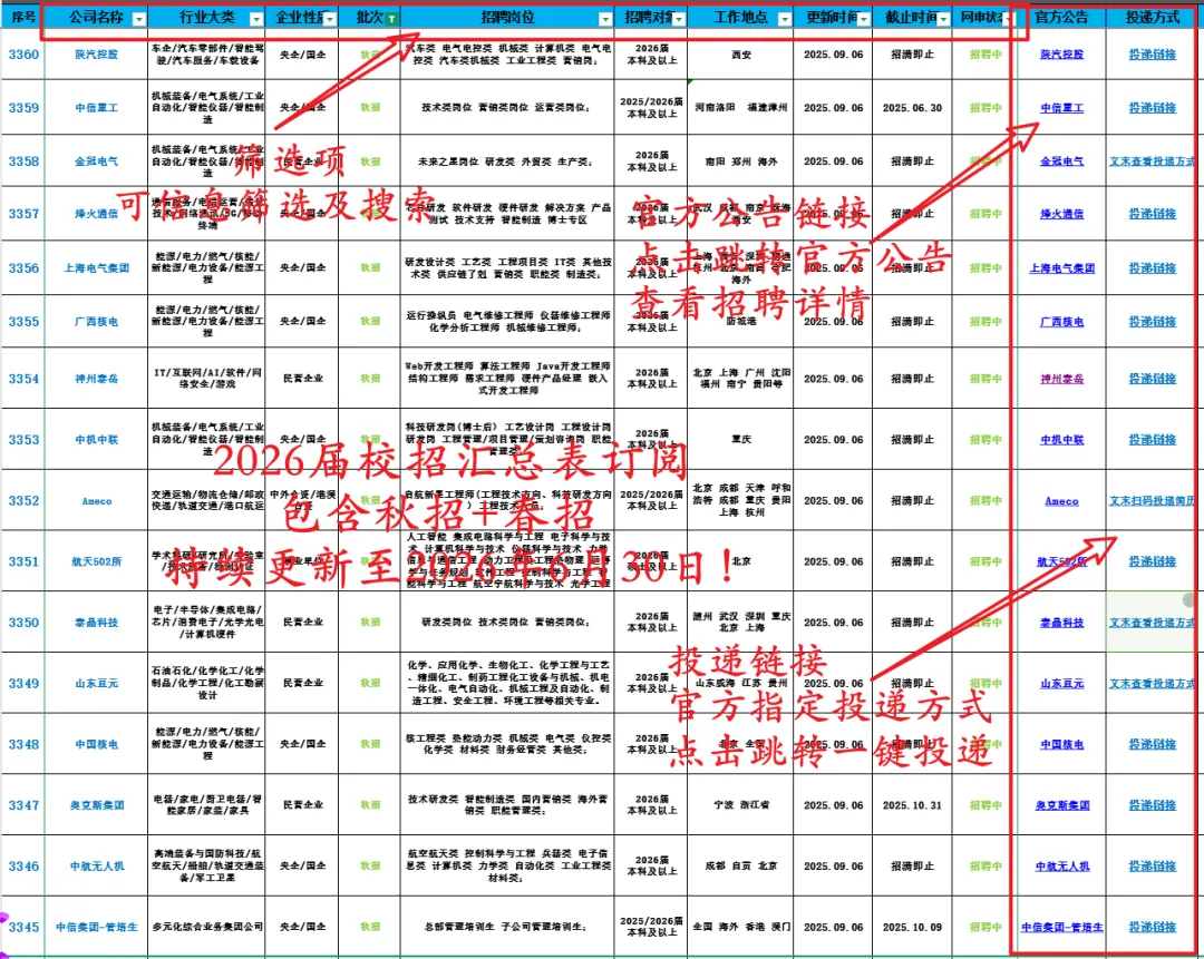 ❗本表格仅供学生校招网申投递使用,家长请勿下单订阅!以免不懂后续操作!添加必须备注:2026届春招汇总