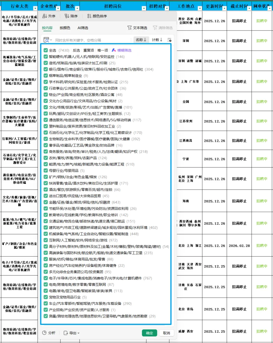 ☑️涵盖互联网/IT软件/游戏/电子信息/物联网/通信/银行/证券/金融/银行/快消零售/食品/机械/智能制造/汽车/自动驾驶/交通物流/航空航天/土木建筑/城乡规划/水利工程/环境工程/石油化工/化学/能源电力/矿产/新能源/芯片/半导体/生物医药/教育/法律/财务/咨询/文化传媒等全行业企业。工作地点涵盖全国各省市!