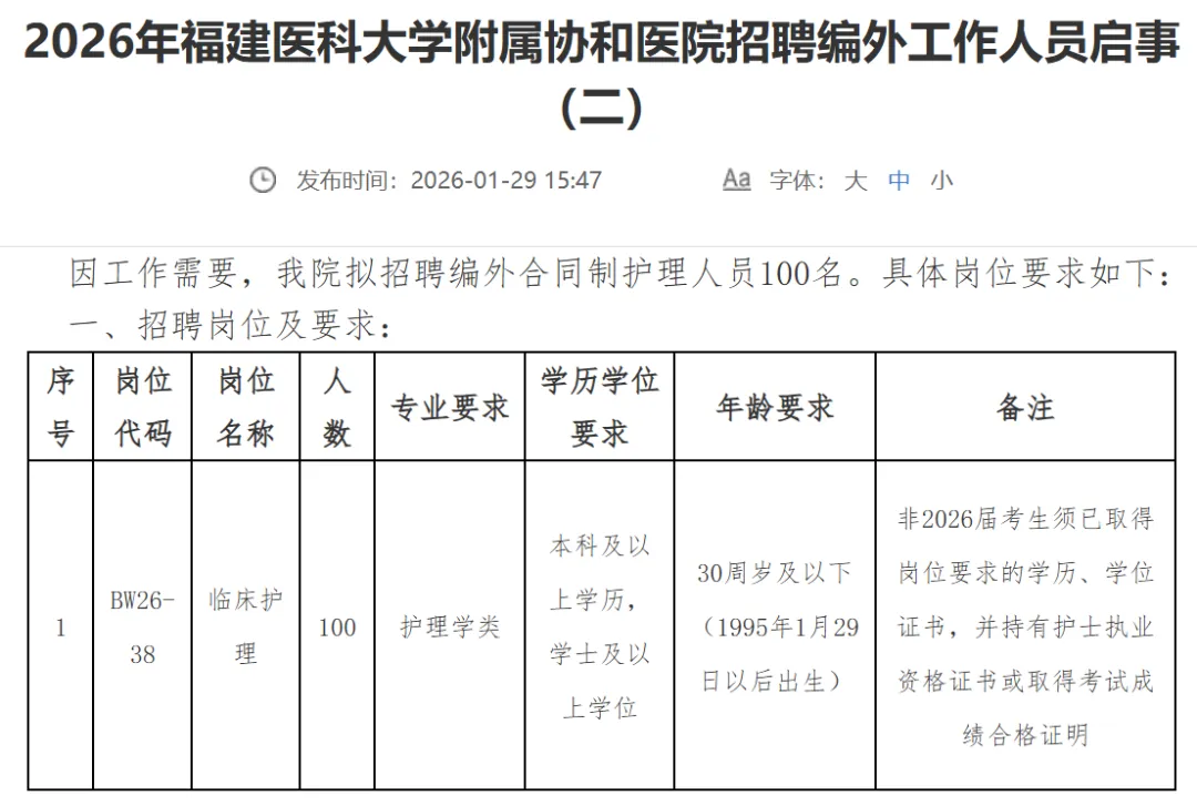 “ 白鹭教育 立志做最靠谱的医疗考公平台 结尾有小礼物哦~”福建医科大学附属协和医院2026年招聘公告正式发布,岗位多、含金量高,对咱们福建医学生来说,这绝对是不容错过的好机会!