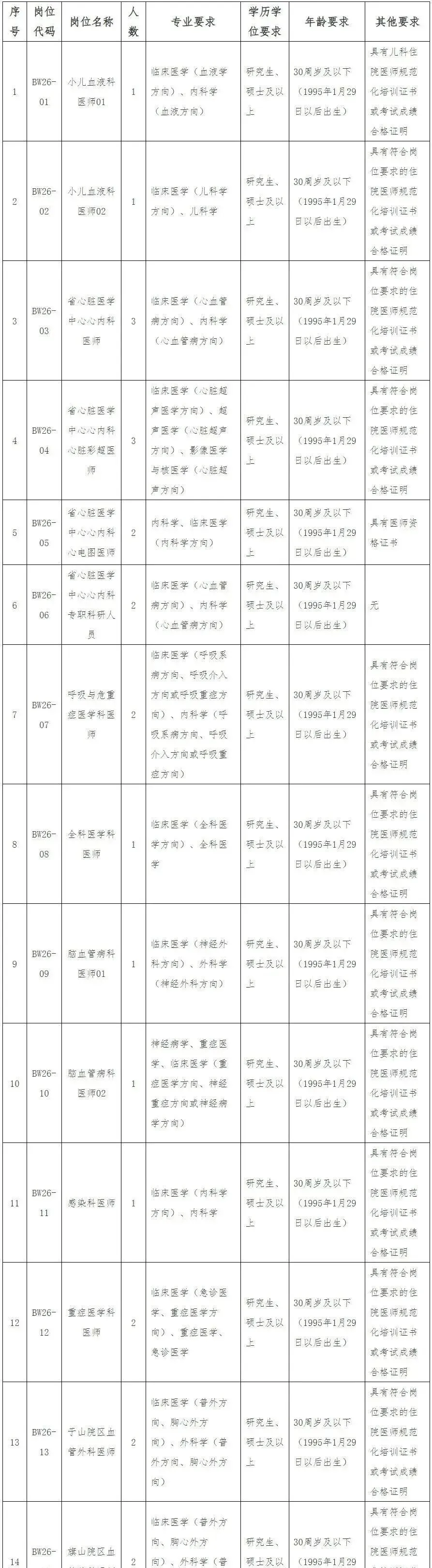 因工作需要,我院拟招聘编外合同制工作人员66名。具体岗位要求如下: