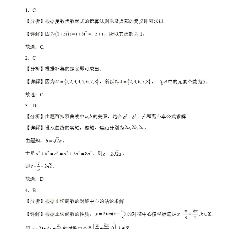 7.B【分析】先求出圆心E(0,-2)到直线 y=3x+2 的距离,然后结合图象,即可得出结论.【详解】由题意,在 x2+(y+2)2=r2(r>0)中,圆心E(0,-2),半径为 r,到直线 y=3x+2 的距离为 1 的点有且仅有 2 个,∵ 圆心 E(0,-2) 到直线 y=3x+2 的距离为:d=∣0×3−(−2)×1+2∣(3)2+(−1)2=2,