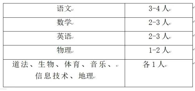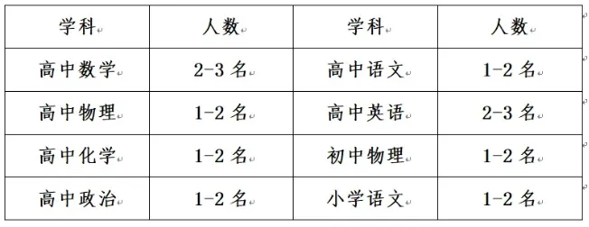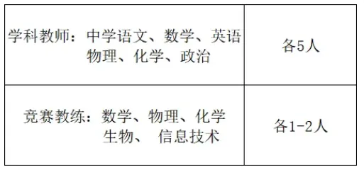 中学语文、数学、英语、物理、化学、生物各2-3人;