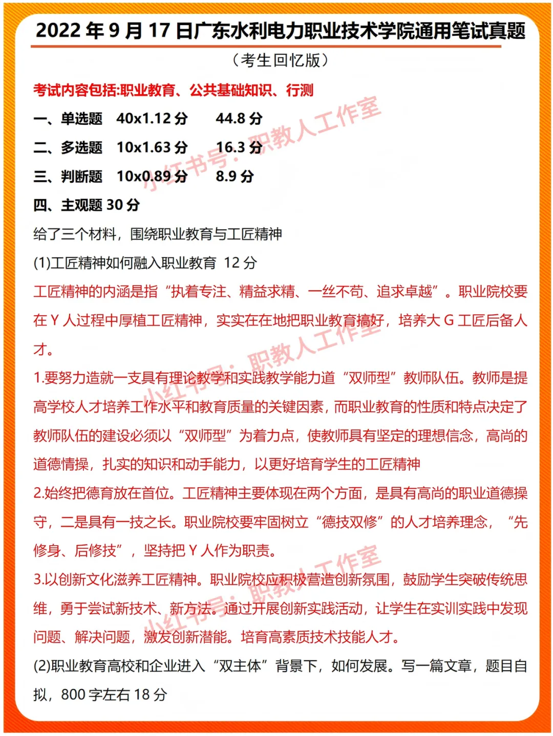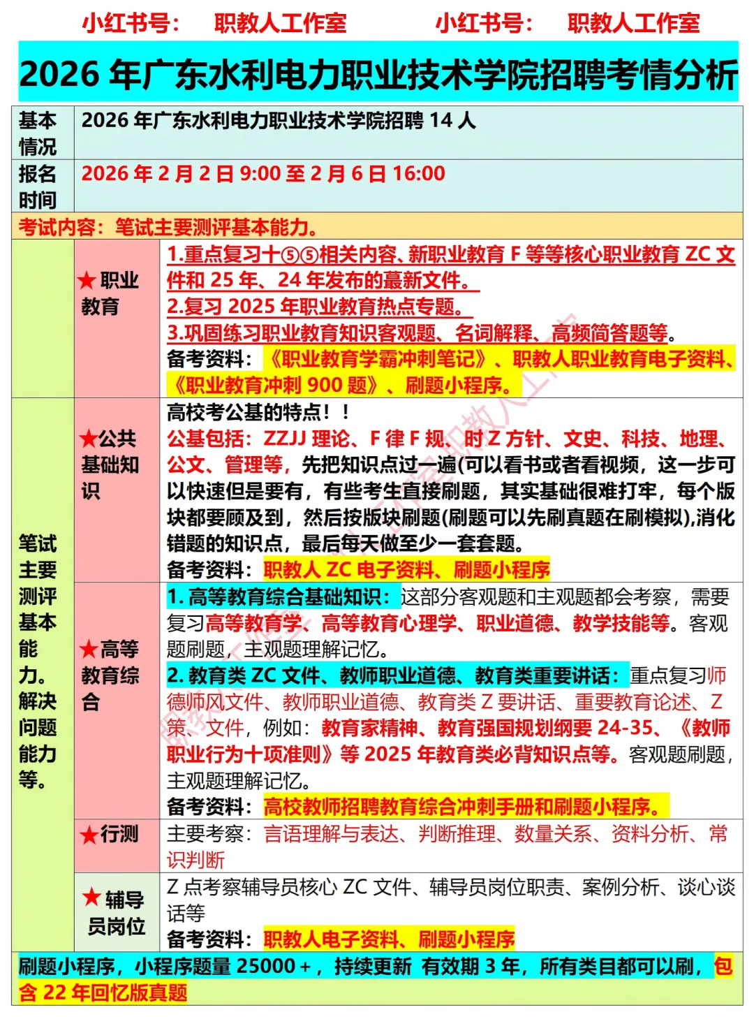 >2026年广东水利电力职业技术学院招聘笔试真题+考情分析+校史校情