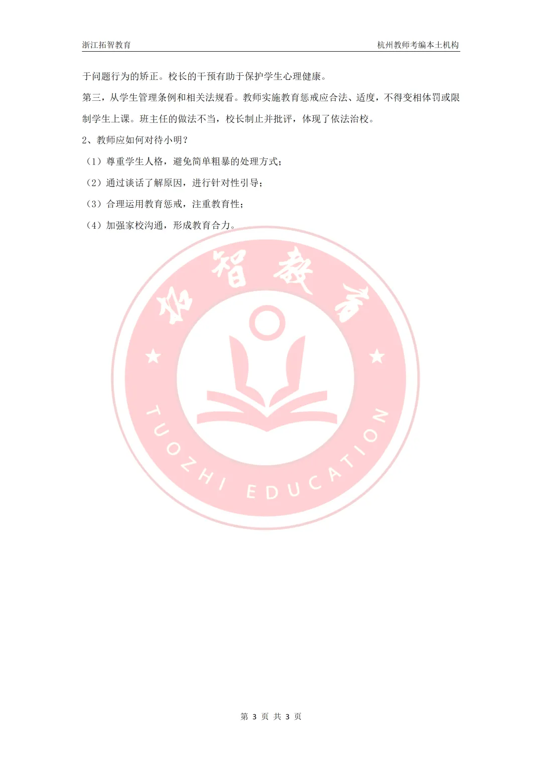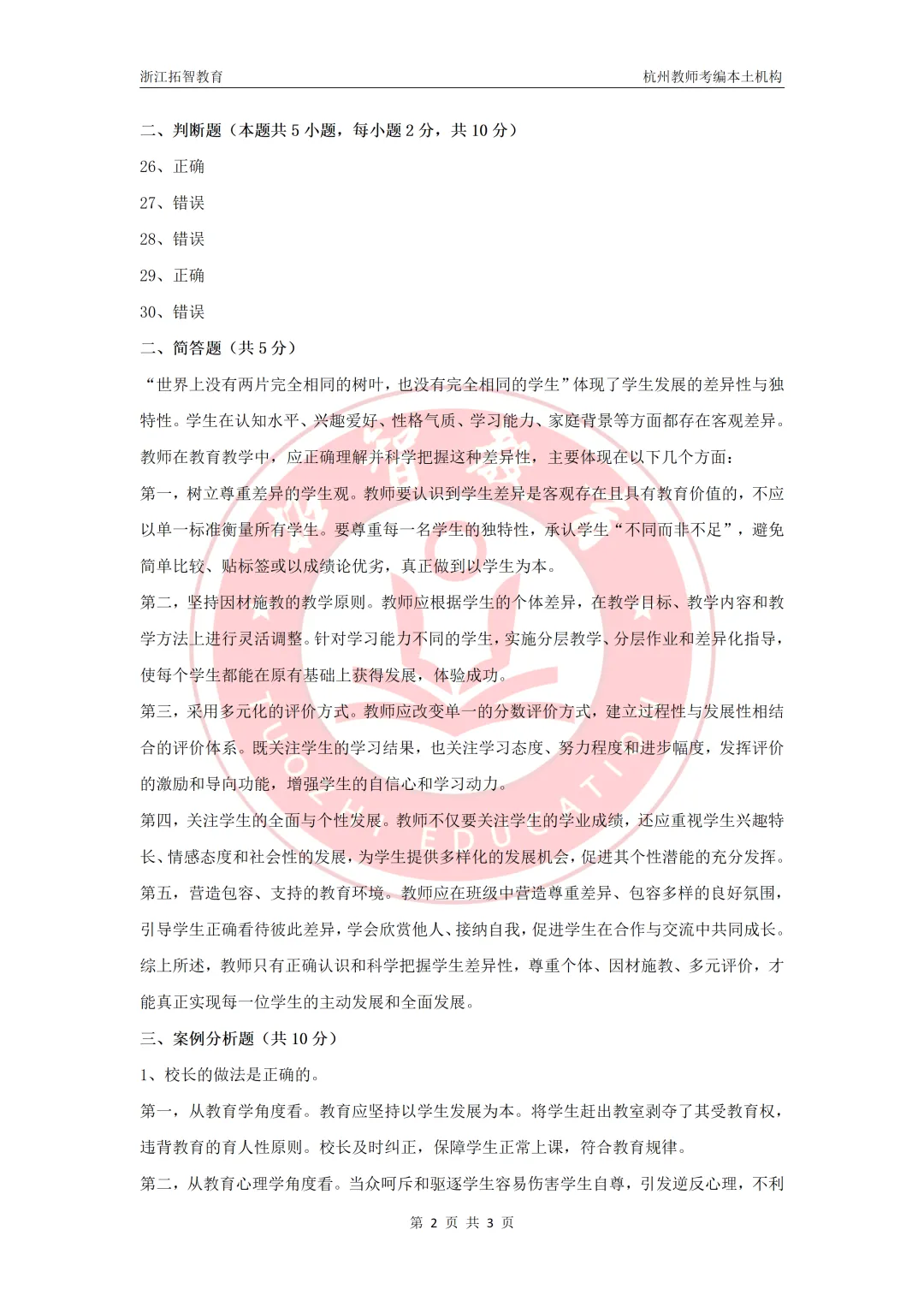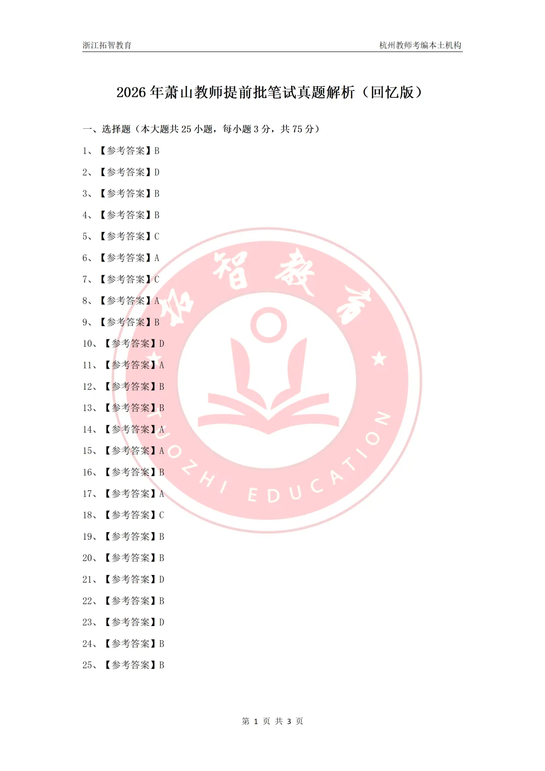 26上萧山提前批教综笔试参考答案