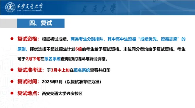 时间及地点:2026年3月(以复试准考证为准),西安交通大学兴庆校区。