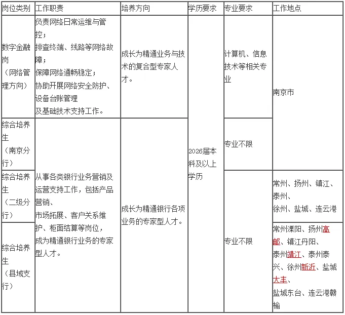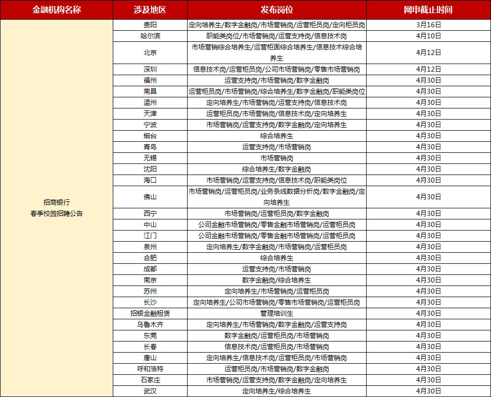 定向培养生、数字金融岗、市场营销岗、运营柜员岗、定向柜员岗
