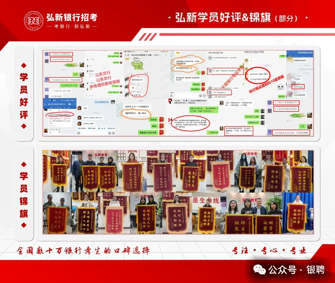 自成立以来,弘新教育已成功帮助数十万考生实现入职梦想,学员遍布全国各地。在银行、农村信用社、邮政集团等金融系统中,随处可见弘新学员的身影。众多学员通过在弘新的学习,不仅顺利通过笔试和面试,还在工作岗位上展现出扎实的专业素养和优秀的工作能力。许多学员在取得优异成绩后,自发向身边的同学、朋友推荐弘新教育。在学员们的口口相传中,弘新教育的品牌知名度和美誉度不断提升,成为了众多考生备考金融招考的首选机构。