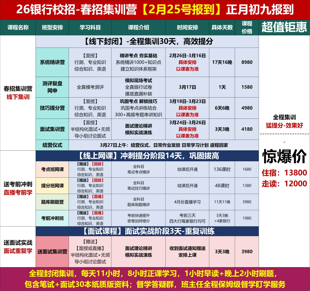 考前冲刺班,3天3晚直播科技,国有四大行每家银行均可。
