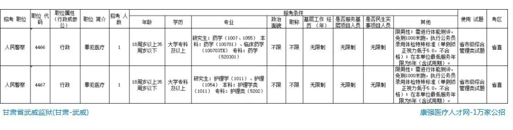 当前位置:首页>应届生招聘>【应届生】甘肃省武威监狱招聘公告,大专起,招2人
