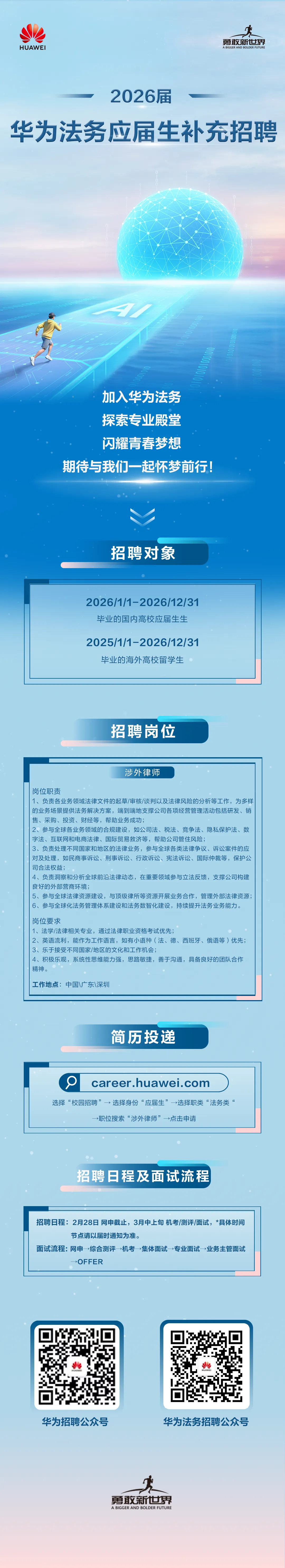 招聘信息 | 华为法务2026届应届生补充招聘启动