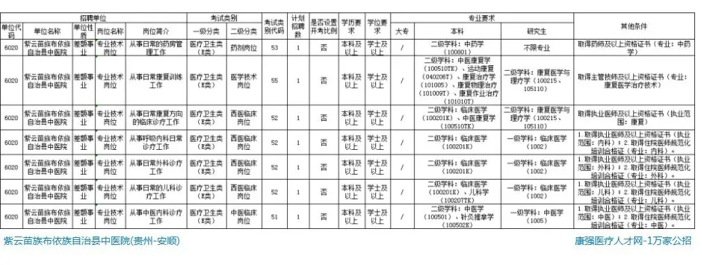 当前位置:首页>应届生招聘>【应届生】紫云苗族布依族自治县中医院招聘公告,本科起,招7人