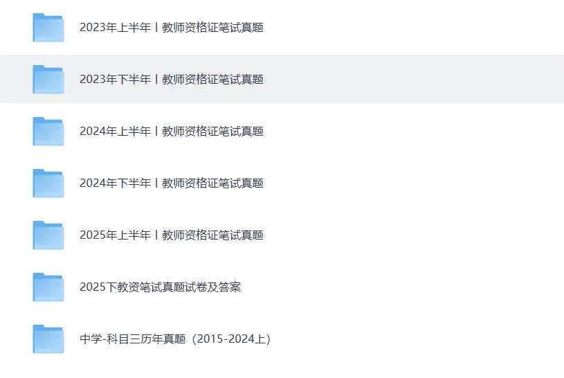 中学:科一综合素质2011~2025上半年真题及答案解析科二教育知识与能力2011~2025上半年真题及答案解析小学: