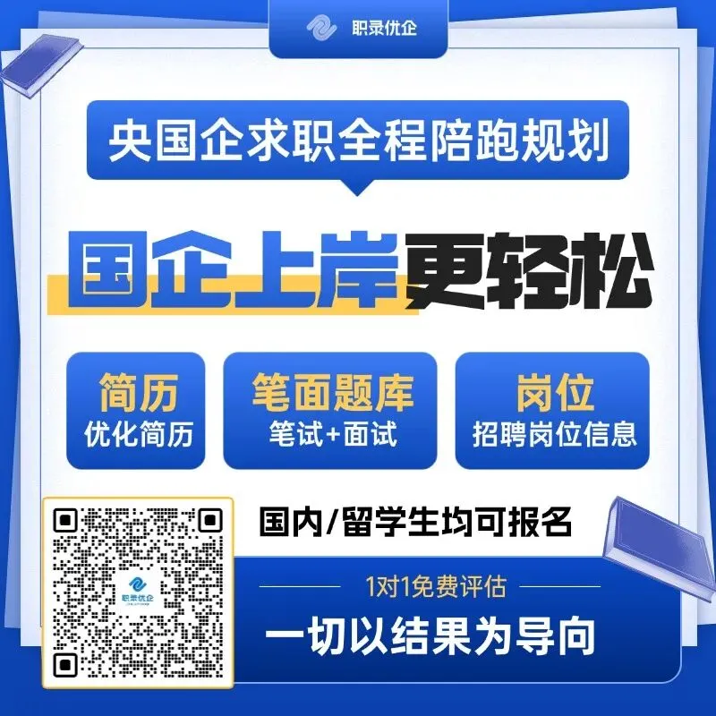 如果你是26-29届学生,想了解求职技巧,可扫描下方二维码,回复:独角兽,添加微信,获取春招一站式上岸指导。国企央企招聘:央国企求职平台,为大学生提供一站式“国企求职”解决方案。国企/央企/银行校招、实习资讯、网申技巧、笔面试指导等都在这里!面向人群:国内本科生、研究生、港澳台及海外留学生等。