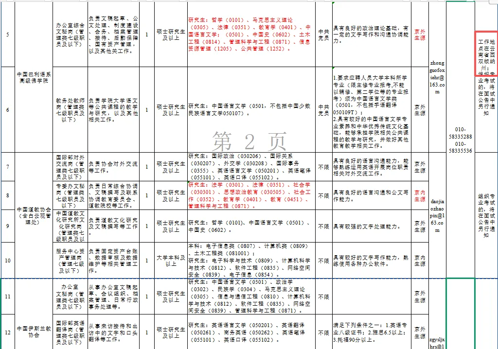 根据工作需要,按照《事业单位人事管理条例》和事业单位公开招聘有关政策规定,中国佛教协会(含中国佛学院和中国巴利语系高级佛学院)、中国道教协会(含白云观管理处)、中国伊斯兰教协会(含中国伊斯兰教经学院)、中国天主教爱国会2026年度面向应届高校毕业生公开招聘工作人员16名。具体事项公告如下。